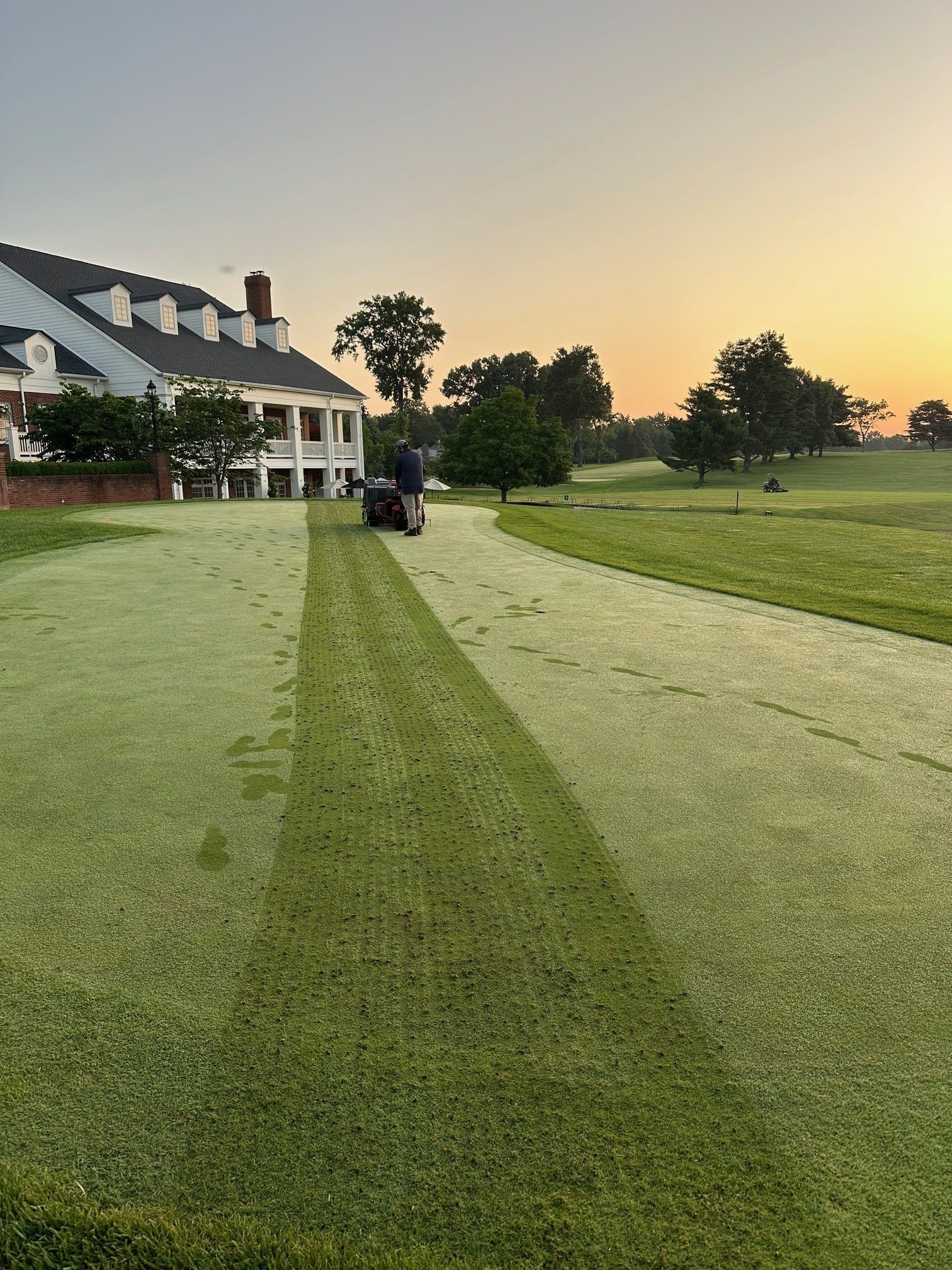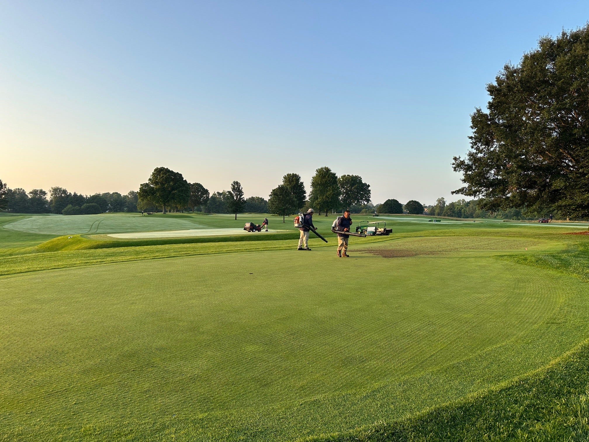 The Monday immediately following the championships we performed a mini aerification with micro tines to alleviate stress and help our surfaces “breathe” as the warm, humid air made its way into central Kentucky. With Men’s League currently enjoying a “halftime” we have now relaxed our mowing height along with our mowing and rolling schedule to ensure we keep things smooth and healthy during what is historically the most challenging weather of the season. We have also altered the mowing schedule of our fairways to reduce traffic stress.