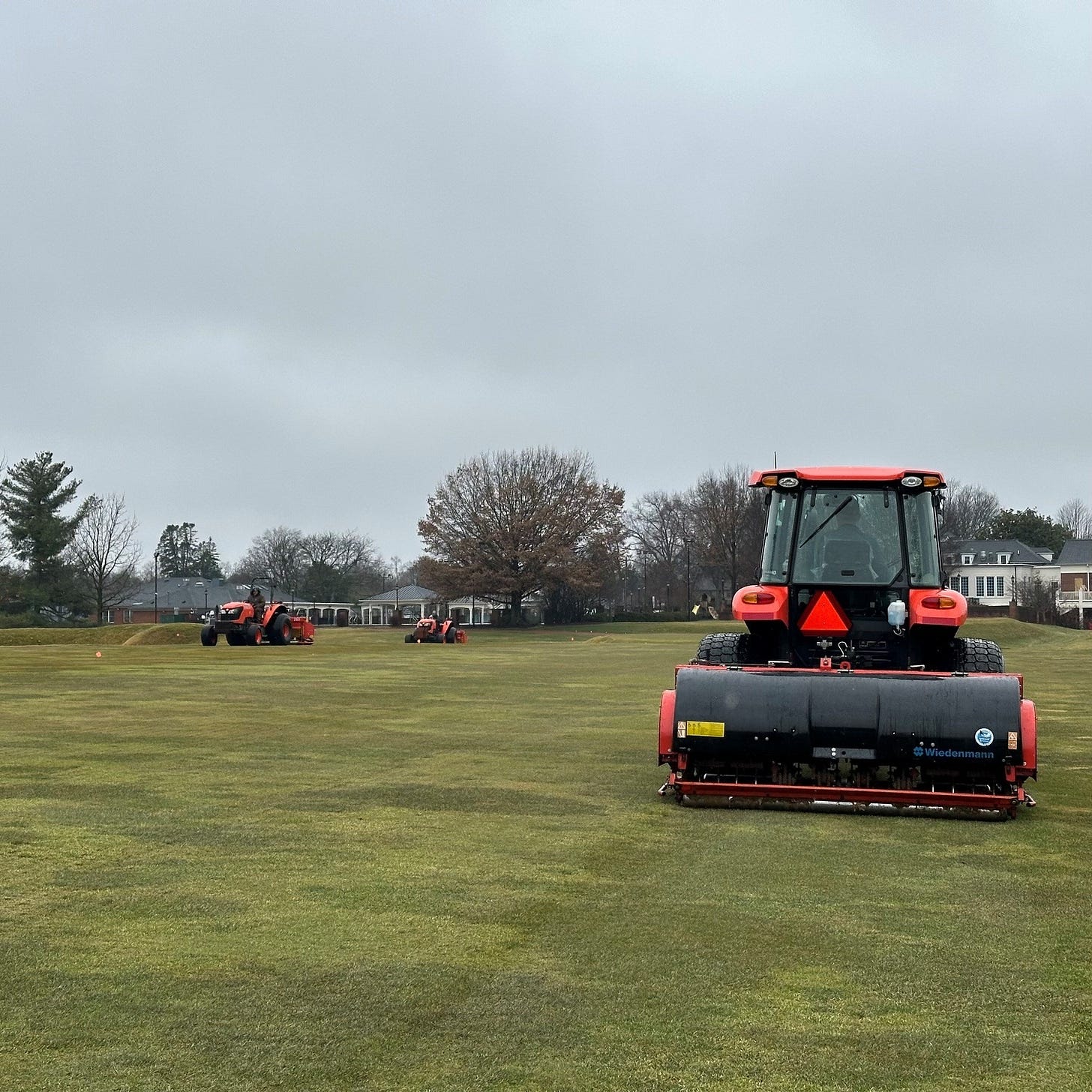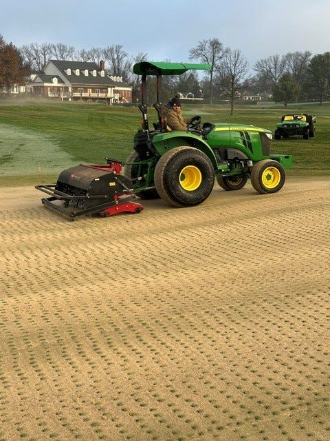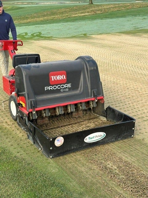 Next, tees were hollow core aerified while the approaches benefited from the DryJect process. The irrigation system was pressurized, and the rough started to grow which mowing was initiated, no turning back now. ;)
