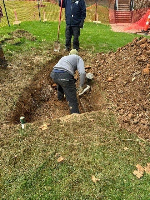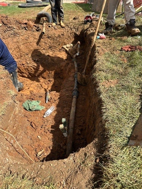 We had to relocate a portion of the irrigation system that supports the tees on Hole 1. The clubhouse renovations had a footer for a new column located directly on top of the head servicing the back tee, so the team had to excavate to expose the line, remove a portion in order to allow for the pipe to move out of the area of disturbance. Hats off to the guys for making that happen.